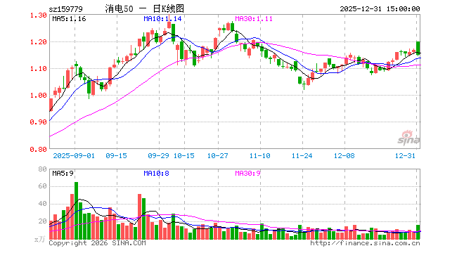 12月31日,消费电子50ETF(159779)跌1.63%,成交额1817.84万元。当日份额增加900.00万份,最新份额为2.30亿份,近20个交易日份额减少2800.00万份。最新资产净值计算值为2.64亿元。