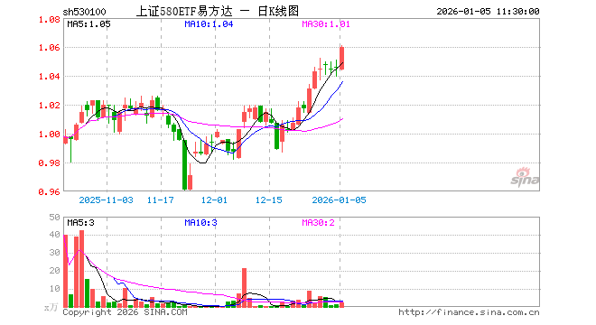 上证580ETF易方达(530100)涨1.34%,半日成交额233.11万元