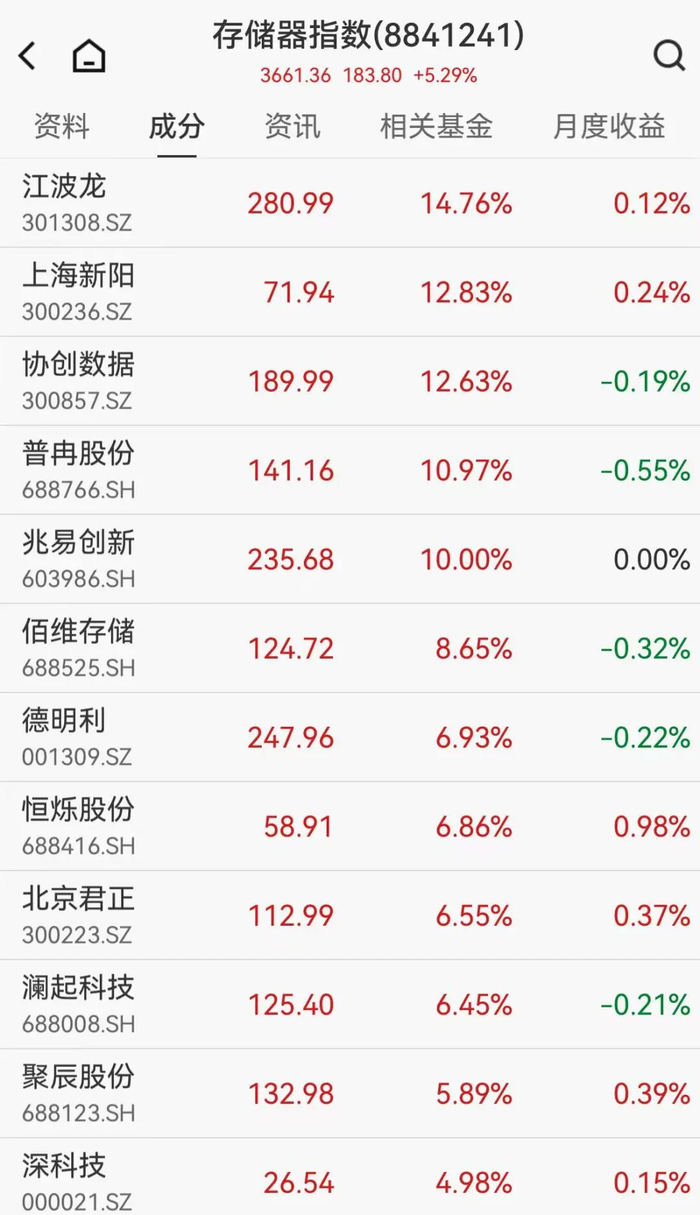 存储芯片概念走强。截至发稿,江波龙涨超14%,上海新阳涨超12%,兆易创新涨停。
