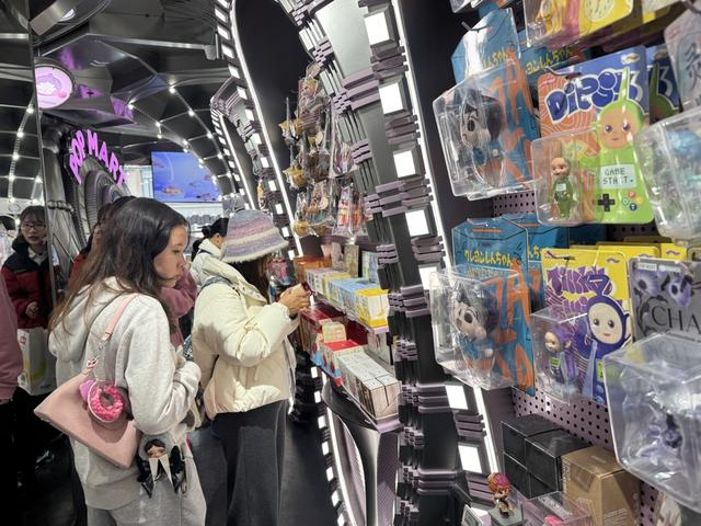 其中,热门IP拉布布(Labubu)的人气依旧高涨,新上市的款式吸引了很多消费者,一些经典旧款依然“仅供陈列”,没有现货。店员介绍说,如果想购买这些款式,可以加入门店会员群,了解配货情况;或者通过官方小程序预约,待到货后再购买。