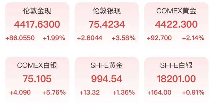 1月5日,金价大涨,现货黄金重回4400美元/盎司关口之上,日内涨幅扩大至1.9%。与此同时,现货白银价格一度大涨4%。