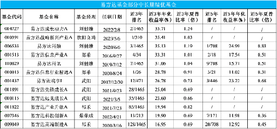 武阳管理的易方达瑞享I(001437)、易方达先锋成长A(011891)、易方达远见成长A(010115)近3年均实现25%左右的年化回报,其中易方达瑞享I近5年以23.22%的年化回报在446只同类产品中排名第3。