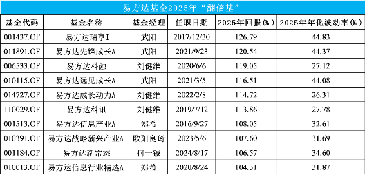 主动权益基金一年诞生75只“翻倍基” 易方达基金独揽10只数量居首