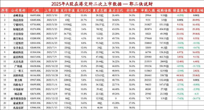 2025年全年共有19只A股上市公司成功在港交所二次上市(即“A+H”双重上市),这一数字超过过去5年A股赴港上市总和。