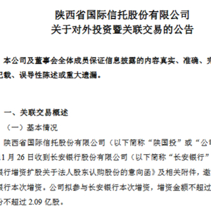 陕西省国际信托:拟参与长安银行增资 增资金额不超过8亿元