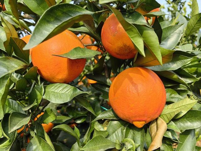 走进血橙基地,目之所及是漫山遍野的果树,黄澄澄的血橙挂满了枝头,硬是把树枝给压弯了腰,让人忍不住去摘两个,为果树减减负。