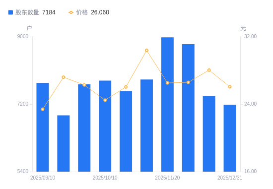 近一年(2024年12月31日至2025年12月31日),采纳股份A股股东户数从8041户,减低至7184户,降幅10.66%,区间股价上涨26.20%。