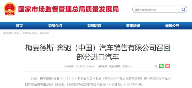 奔驰全年累计召回16次,涉及进口GLE、进口GLS、进口EQS、进口S级、国产EQC等车型,累计召回缺陷车辆146390辆。2025年6月13日至20日的一周内,该品牌便连续实施4次召回,召回频率引发消费者关注。