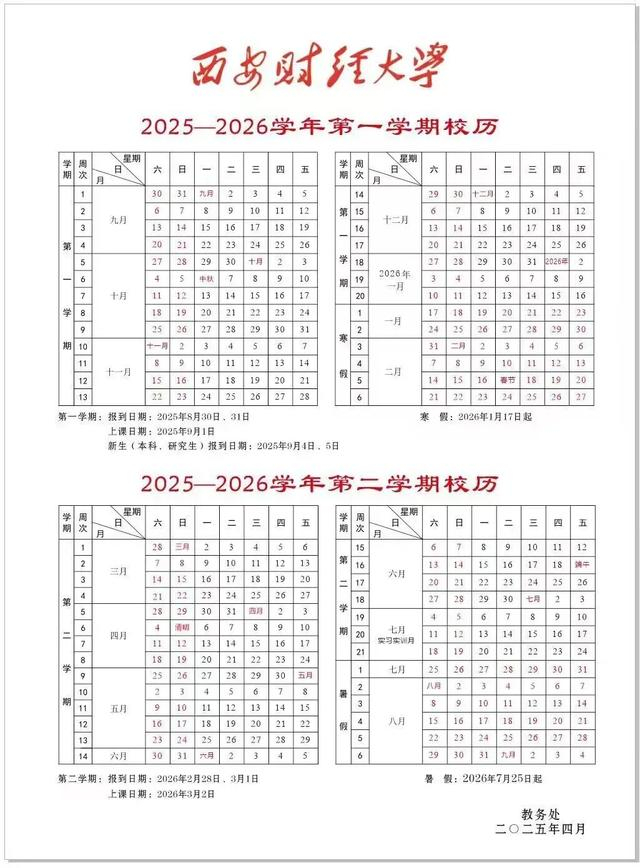 高一、高二年级2025年8月25日开学上课,2026年1月24日起放寒假,全学期共22周;