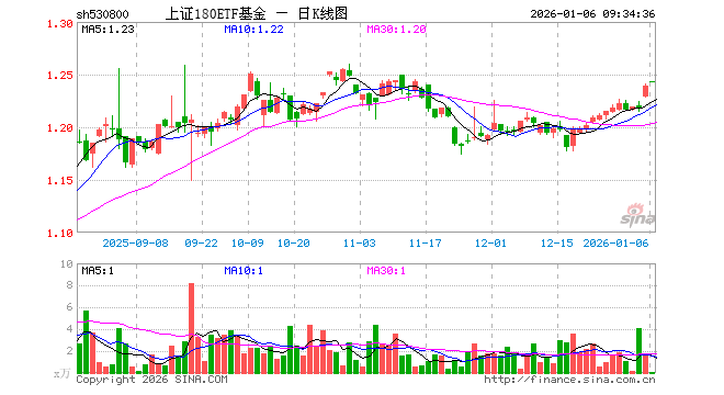 1月6日,上证180ETF基金(530800)开盘涨0.32%,报1.243元。上证180ETF基金(530800)重仓股方面,贵州茅台开盘涨0.46%,紫金矿业涨1.69%,恒瑞医药涨0.44%,药明康德涨0.59%,中国平安涨0.06%,中芯国际跌0.73%,工业富联涨0.00%,招商银行涨0.24%,寒武纪跌0.72%,海光信息跌0.80%。