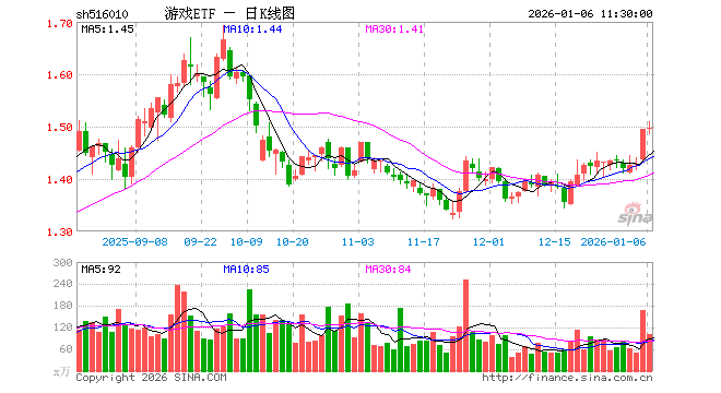 1月6日,截止午间收盘,游戏ETF(516010)涨0.20%,报1.497元,成交额1.51亿元。游戏ETF(516010)重仓股方面,巨人网络截止午盘涨1.59%,恺英网络涨0.81%,三七互娱涨2.97%,光线传媒涨0.78%,神州泰岳跌0.84%,完美世界跌1.48%,吉比特涨1.68%,掌趣科技涨0.19%,顺网科技跌0.43%,游族网络跌0.32%。
