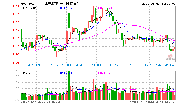 1月6日,截止午间收盘,绿电ETF(562550)涨0.46%,报1.099元,成交额745.43万元。绿电ETF(562550)重仓股方面,中国核电截止午盘涨0.34%,长江电力涨0.40%,三峡能源涨0.24%,国电电力跌0.80%,国投电力跌0.08%,华能国际跌0.13%,上海电力涨3.09%,川投能源跌0.14%,华电国际跌0.20%,浙能电力涨0.20%。