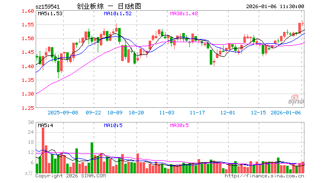 1月6日,截止午间收盘,创业板综ETF万家(159541)跌0.06%,报1.552元,成交额990.14万元。创业板综ETF万家(159541)重仓股方面,宁德时代截止午盘跌1.84%,中际旭创跌3.53%,东方财富涨4.29%,新易盛跌2.91%,迈瑞医疗涨1.47%,阳光电源涨0.42%,胜宏科技涨1.57%,汇川技术跌0.14%,蓝思科技涨0.41%,亿纬锂能涨0.16%。