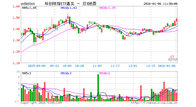 科创综指ETF嘉实(589300)涨1.23%,半日成交额424.18万元