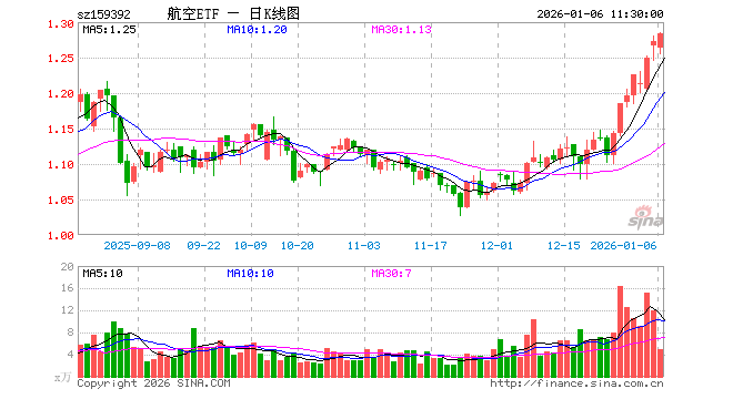 航空ETF(159392)涨0.94%,半日成交额617.62万元