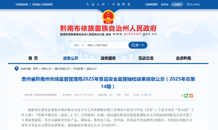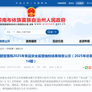 贵州省黔南州市场监督管理局2025年食品安全监督抽检结果信息公示(2025年总第14期)