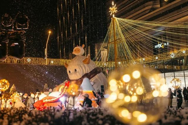 长春万象城,延续其冰雪IP热度,推出“糯糯的冬日奇遇”主题展,巨型温暖装置“糯糯”成为打卡焦点。跨年夜整点飘雪与璀璨灯光秀交织,将商业空间转化为梦幻的童话世界,不仅营造了浓郁的节日仪式感,更直接拉动了场内餐饮等业态的销售,多家餐厅出现“一桌难求”的景象,实现了氛围与效益的双赢。