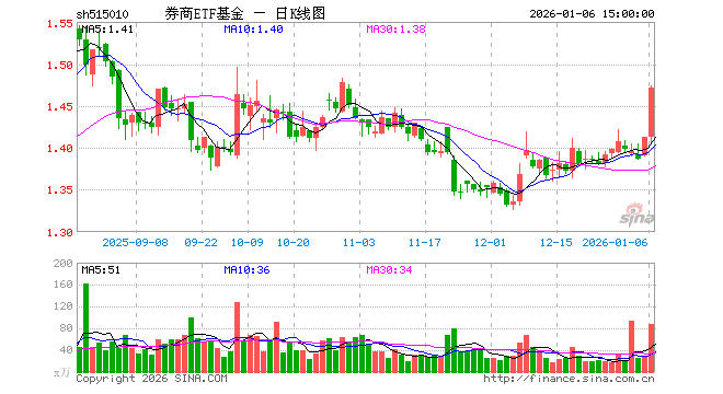 1月6日券商ETF基金(515010)份额减少3350.00万份,最新份额13.74亿份,最新规模20.22亿元