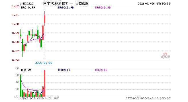 1月6日恒生港股通ETF(520820)份额减少2700.00万份,最新份额2.26亿份,最新规模2.30亿元