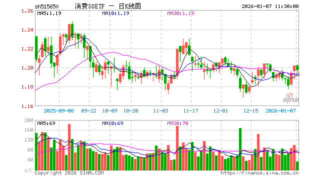 1月7日,截止午间收盘,消费50ETF(515650)跌0.42%,报1.197元,成交额4019.48万元。消费50ETF(515650)重仓股方面,贵州茅台截止午盘跌0.13%,美的集团跌0.46%,五粮液跌0.46%,格力电器跌0.83%,伊利股份跌0.70%,牧原股份跌0.04%,三花智控跌2.29%,温氏股份跌0.70%,海尔智家跌0.80%,山西汾酒跌0.80%。