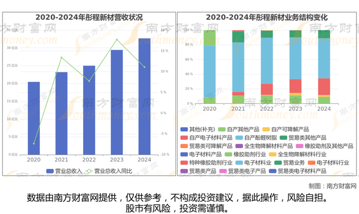 根据南方财富网产业链数据显示,公司产品线涵盖自产酚醛树脂、自产其他产品、自产电子材料产品、贸易类电子产品、贸易类可降解产品、贸易类其他产品等产品;产品广泛应用于汽车轮胎、半导体、生物降解材料等领域。