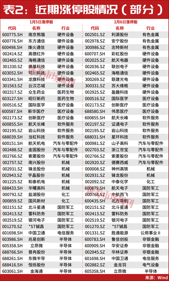 1月5日与1月6日部分涨停公司可见(见表2)。