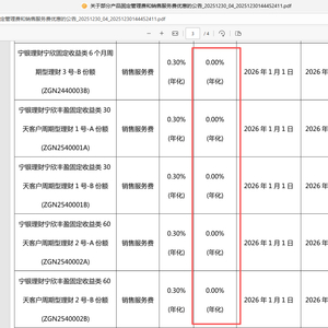 与此同时,宁银理财近期也公告将旗下多只理财产品的销售服务费降至0%。且费用优惠时间覆盖2026年全年。