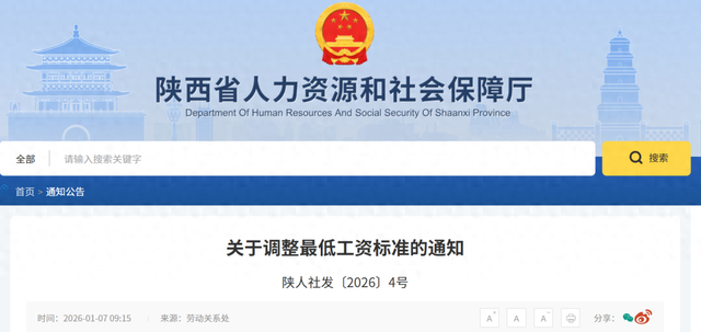 陕西调整最低工资标准
