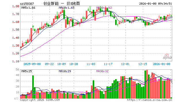 创业板新能源ETF国泰(159387)开盘跌0.18%,重仓股阳光电源跌0.84%,宁德时代跌0.81%