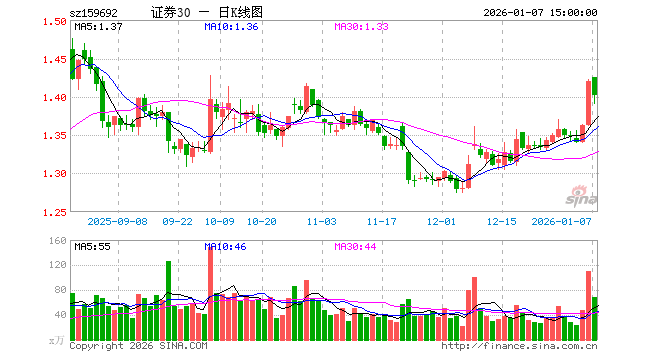 1月7日证券ETF东财(159692)份额减少2200.00万份,最新份额6.22亿份,最新规模8.73亿元