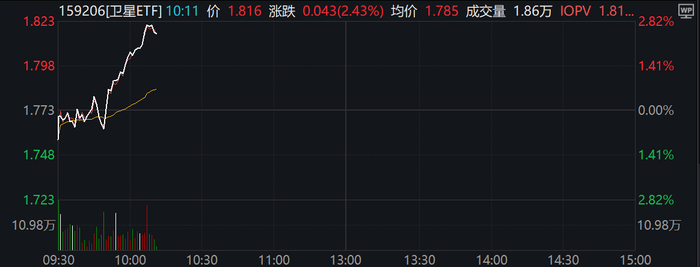 近十日超30亿资金流入!卫星ETF(159206)再度走高,通宇通讯、航天电子领涨!