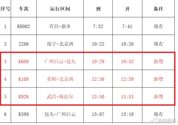 新郑站再增3趟列车!实现郑州、新乡、信阳等省内多地当天往返