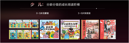 (七)少儿:分龄分级的成长阅读阶梯。这套书系根据儿童认知发展规律和年龄段,构建了从启蒙到进阶的阅读体系,涵盖认知、传统文化、科学、历史、文学等领域。