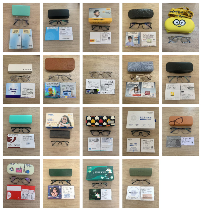 重庆市消委会、四川省消委会工作人员及志愿者以普通消费者身份,结合消费者关注度、品牌知名度等因素,购买了19款儿童青少年近视防控眼镜样品,购买价格从520元/副至3538元/副不等。19款儿童青少年近视防控眼镜样品主要在成渝地区双城经济圈商超、品牌眼镜连锁店、医院眼科视光中心等渠道购买,涉及的镜片、镜架分别为19个品牌。