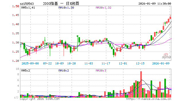 1月9日,截止午间收盘,国证2000ETF基金(159543)涨0.70%,报1.438元,成交额141.25万元。国证2000ETF基金(159543)重仓股方面,博迁新材截止午盘跌0.63%,威迈斯涨0.09%,锌业股份涨1.89%,江山股份跌1.69%,道通科技涨0.57%,中原内配跌0.90%,瑞联新材涨0.06%,路维光电涨0.31%,皓元医药涨1.49%,无锡振华涨0.14%。