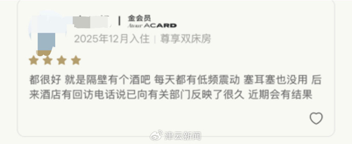 李女士酒店收到的关于噪音扰民的差评