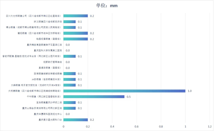 测试结果显示,19款儿童青少年近视防控眼镜样品水平光学中心与眼瞳的单侧偏差均符合国家标准GB 13511.1-2011《配装眼镜 第1部分:单光和多焦点》要求,测试结果见图。