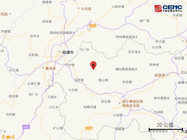 附近村镇:本次地震周边5公里内的村庄有中寨、大寨村、中心村、苏丑院子、坪子、小岩口、龙街村、砂子地、康家院子、松林弯子,20公里内的乡镇有龙街镇、雪山镇、黑土河镇、云贵乡、迤那镇。