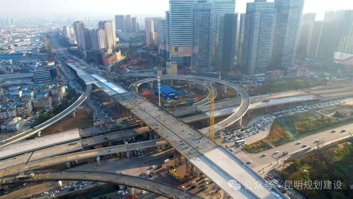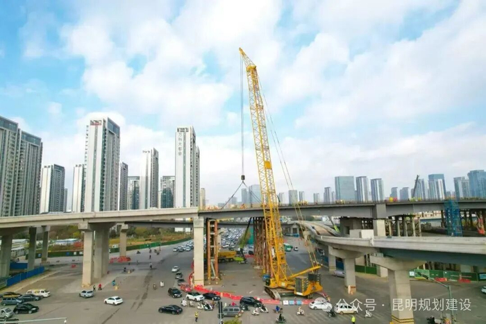 1月8日,随着最后一片预制箱梁精准架设到位,昆明市三环闭合工程东三环A段的核心枢纽广昌立交桥顺利实现全线贯通。