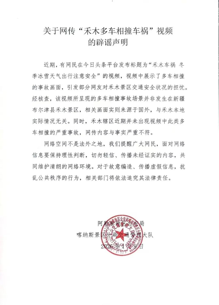 网传“新疆禾木喀纳斯景区多车相撞车祸”?当地辟谣