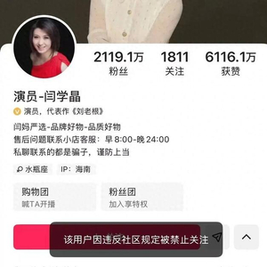 演员闫学晶账号已被禁止关注。