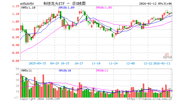 1月12日,科技龙头ETF(516050)开盘涨0.00%,报1.103元。科技龙头ETF(516050)重仓股方面,新易盛开盘跌3.07%,中际旭创跌2.26%,恒瑞医药涨0.50%,药明康德涨0.93%,中芯国际跌0.28%,海光信息涨0.00%,北方华创涨0.11%,澜起科技涨1.34%,中科曙光涨0.32%,胜宏科技跌2.00%。