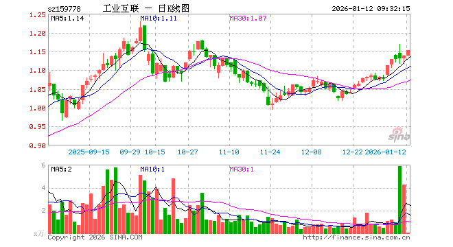 1月12日,工业互联ETF(159778)开盘跌0.09%,报1.137元。工业互联ETF(159778)重仓股方面,工业富联开盘涨0.02%,宁德时代跌0.33%,北方华创涨0.11%,兆易创新涨2.07%,汇川技术涨1.07%,豪威集团涨0.01%,科大讯飞涨3.42%,海康威视涨0.79%,亿纬锂能跌1.07%,比亚迪涨0.00%。