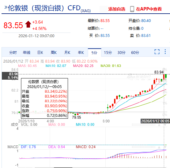 快讯|现货白银创下历史新高,现报83.9美元/盎司