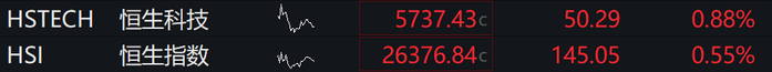 恒生指数高开0.55%,恒生科技指数涨0.88%。药明生物、美团、百度集团、紫金矿业、哔哩哔哩涨逾2%。“全球大模型第一股”智谱涨近15%。