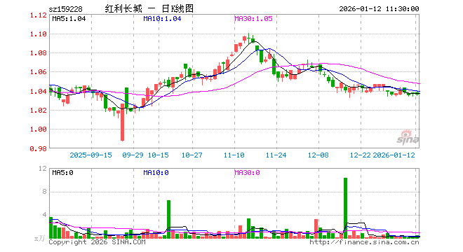 1月12日,截止午间收盘,红利低波ETF长城(159228)跌0.10%,报1.036元,成交额39.31万元。红利低波ETF长城(159228)重仓股方面,冀中能源截止午盘跌0.36%,养元饮品跌0.97%,厦门国贸涨1.55%,双汇发展跌0.35%,雅戈尔跌0.40%,苏泊尔跌0.47%,大秦铁路涨0.78%,中国神华跌1.58%,中国石化跌3.90%,江中药业跌0.26%。