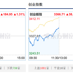 1月12日,A股三大指数早盘集体上涨,截至午间收盘,上证指数涨0.75%,报4151.14点;深证成指涨1.31%,报14305.1点;创业板指涨1.17%,报3366.71点。截至午盘,全市场3804只股票上涨、1504只股票下跌。