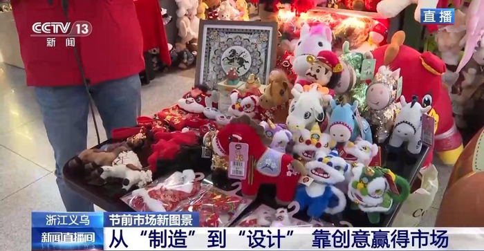 总台记者 夏周:我在义乌小商品市场毛绒玩具专区的一位商户的店铺里观察了一下,其中一款叫“马上有钱”的毛绒玩具是去年10月中旬上架的,有5个不同尺寸。当初为了定版,前前后后花了半个月,因为当时老板娘觉得马嘴用黄色更醒目,而设计团队觉得白色更时尚,最终老板娘听取了他们的建议,把马嘴定版为白色。当初老板娘对这款小马的市场前景并没有太大把握,上市之后每天大概能卖400个左右,不算爆款。但今年一月份,因为生产线上工人的一个小小失误让它快速出圈了。