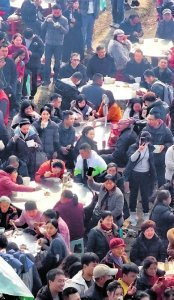 “11日中午有几十桌,晚上有30桌,就这样至少还有一半的人没吃到饭,一直忙到12日凌晨1点过。”庆福村村委会一位姓单的工作人员说。这两天村委会全员出动,承担起维持宴席现场秩序、帮忙做菜的工作。同时,当地村民、合川本地多家企业都加入到帮忙大军中,有的企业还赞助了不少食材。热闹的流水席,还吸引来专业烹饪团队,他们赶到现场,义务颠勺,忙前忙后。