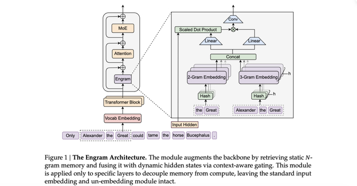 Engram 模块: 负责海量知识点的“存储与快速检索”。